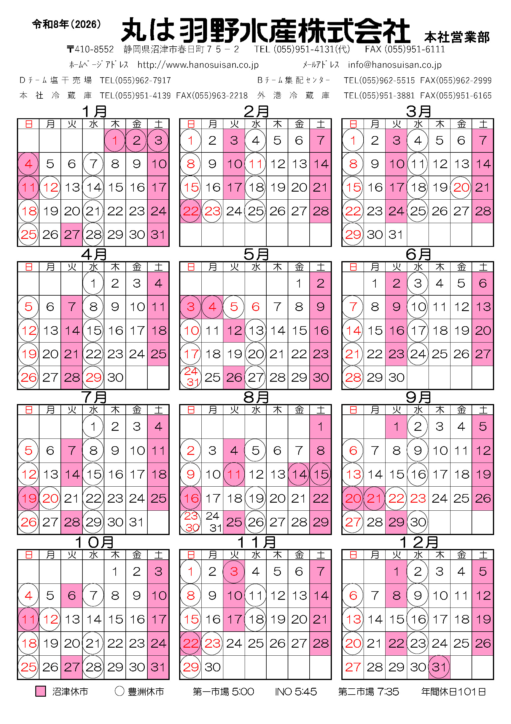 令和8年度(2026年) の本社営業部の休日カレンダーが出来上がりました。